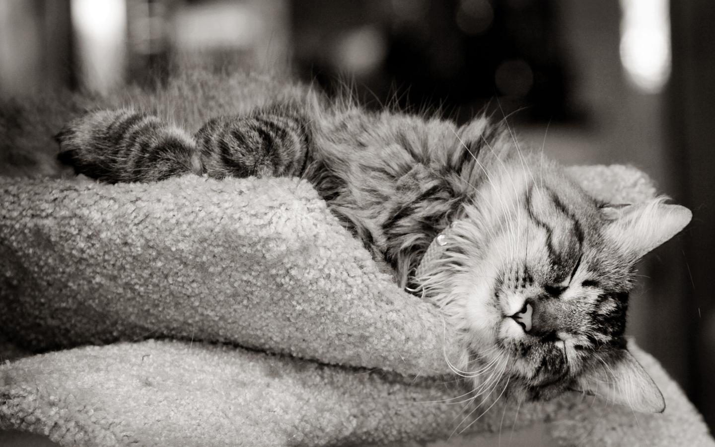 Обои Кошка на шерстяной подушке