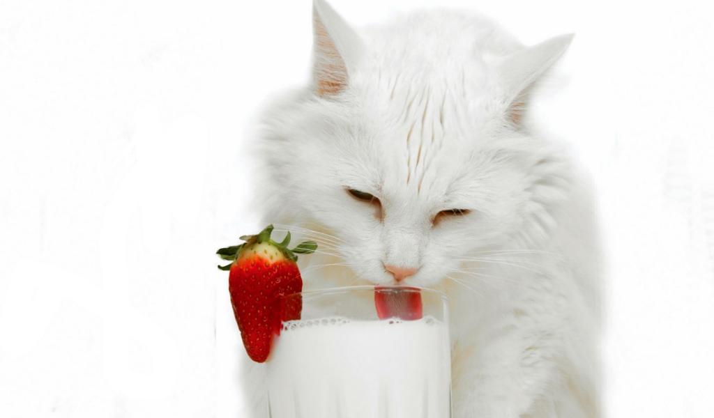 Обои Белая кошка и молоко