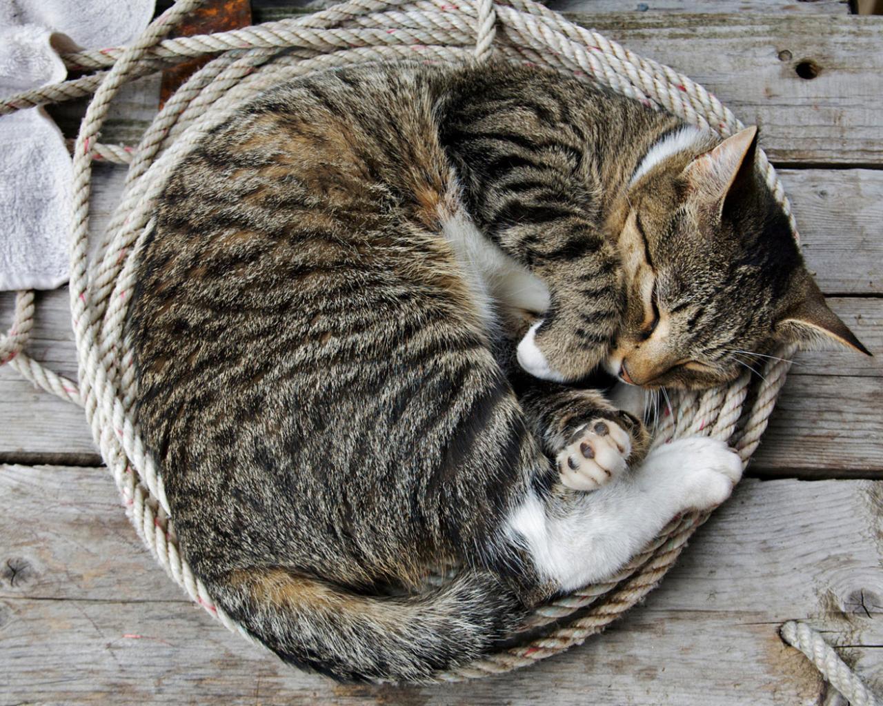 Обои Кошка на веревке