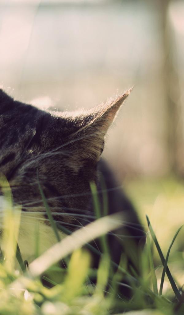 Обои Кот ест траву