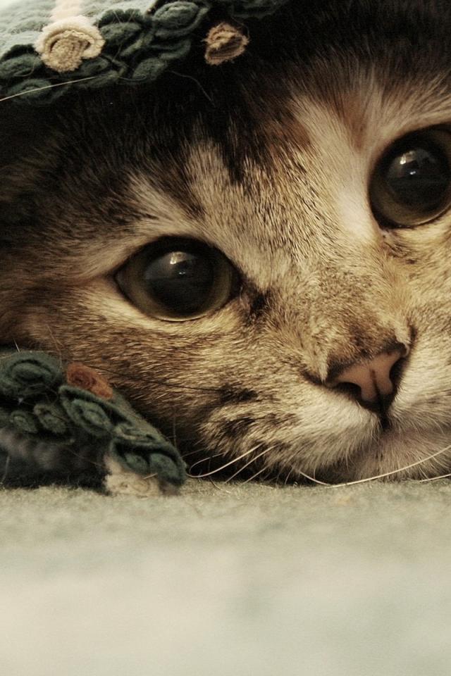 Обои Спрятавшаяся кошка