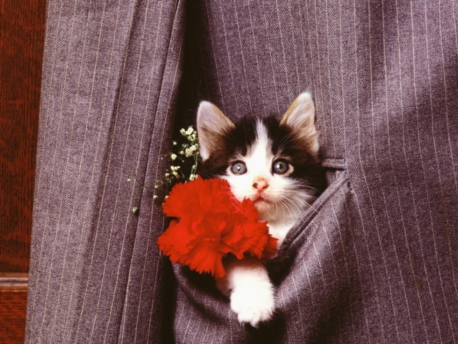 Обои Кошка в кармане