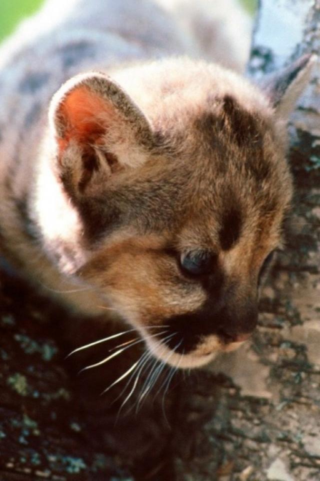 Обои Серый кот на дереве
