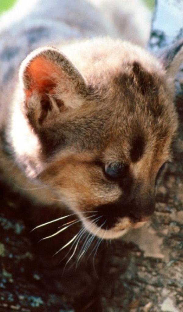 Обои Серый кот на дереве