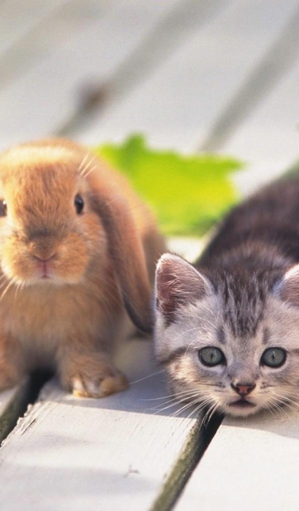 Обои Котенок и заяц