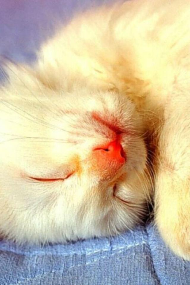 Обои Спящий белый кот