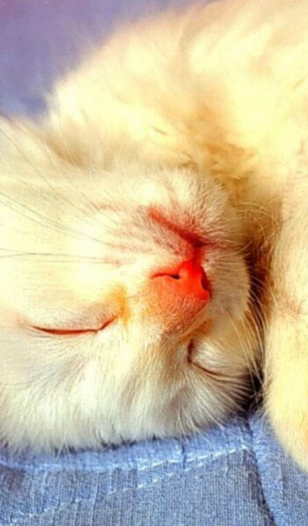 Обои Спящий белый кот