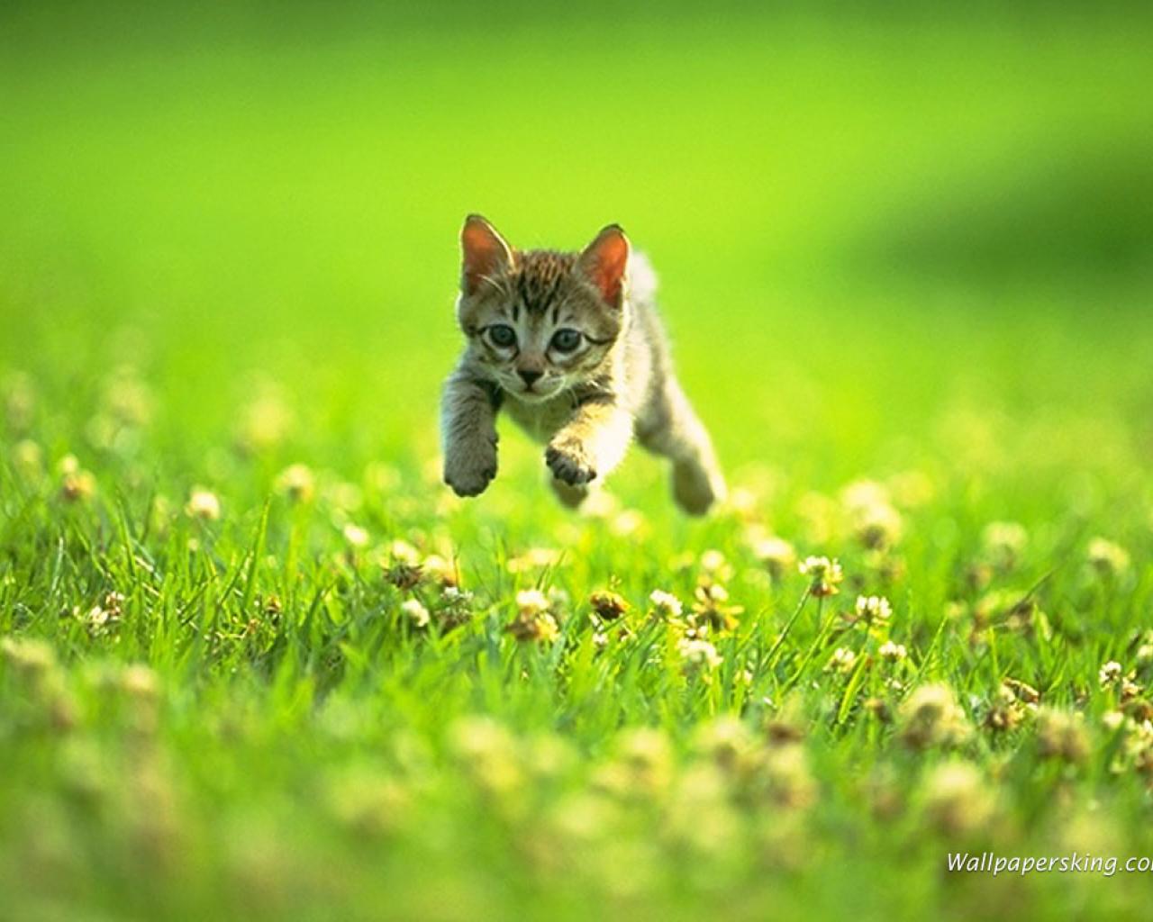 Обои Котёнок играющийся на траве