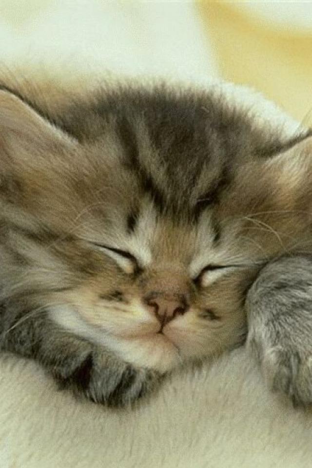 Обои Спящий маленький котёнок