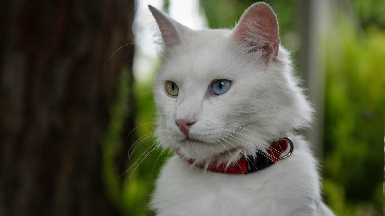 Обои Кот турецкая ангора в ошейнике