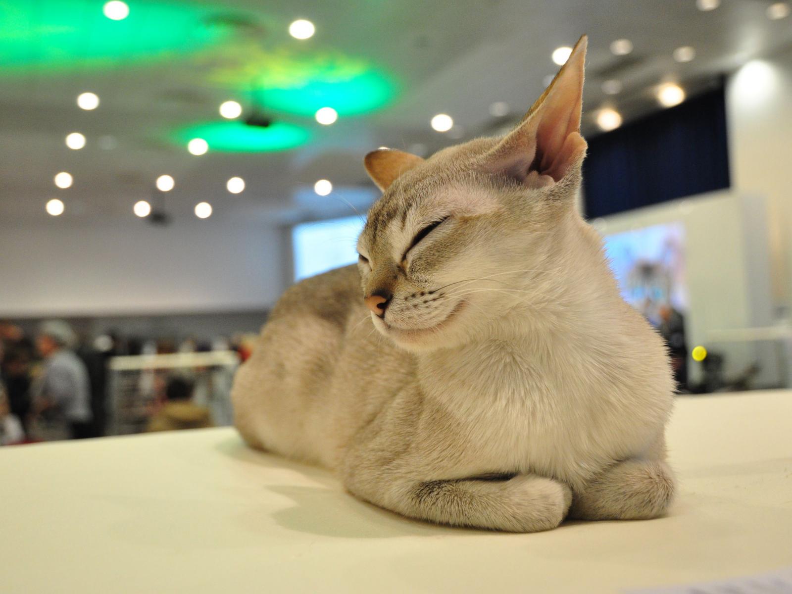 Обои Сингапурская кошка прикрыла глаза