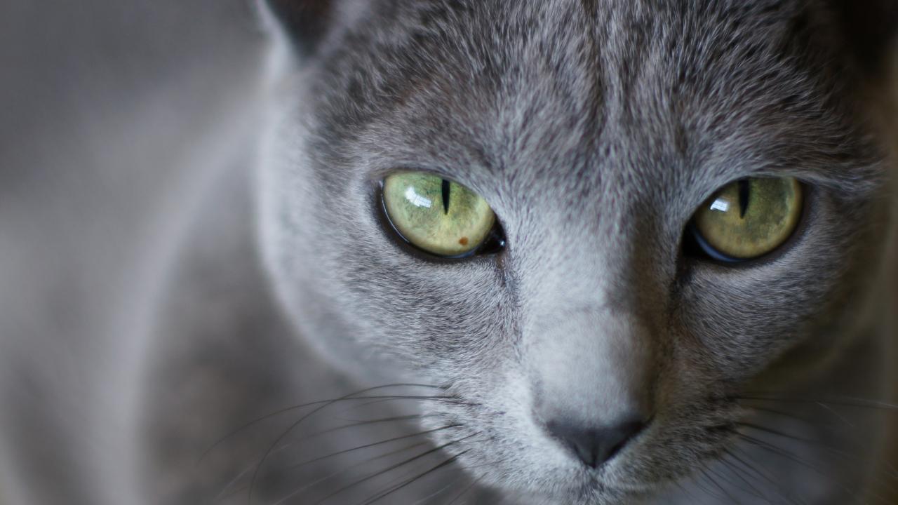 Обои Большие глаза русской голубой кошки