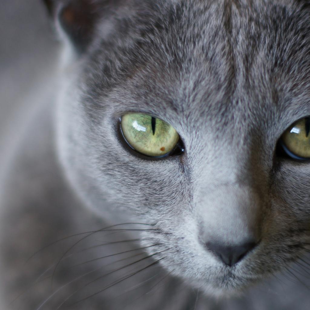 Обои Мордочка русской голубой кошки