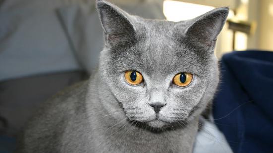 Обои Желтоглазая русская голубая кошка