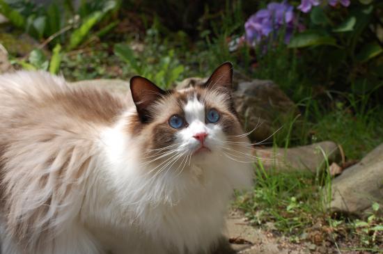 Обои Кошка рэгдолл на природе