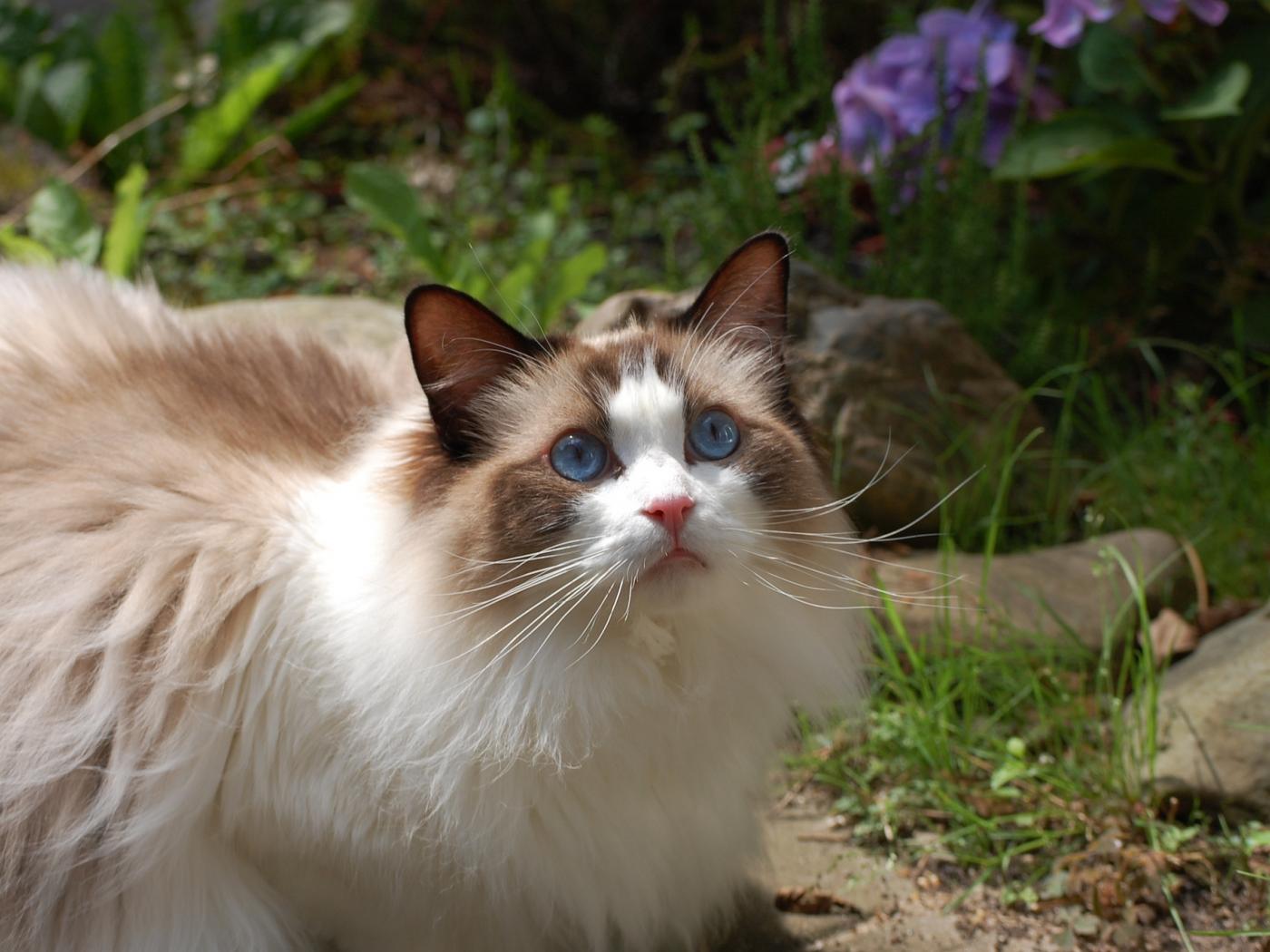 Обои Кошка рэгдолл на природе