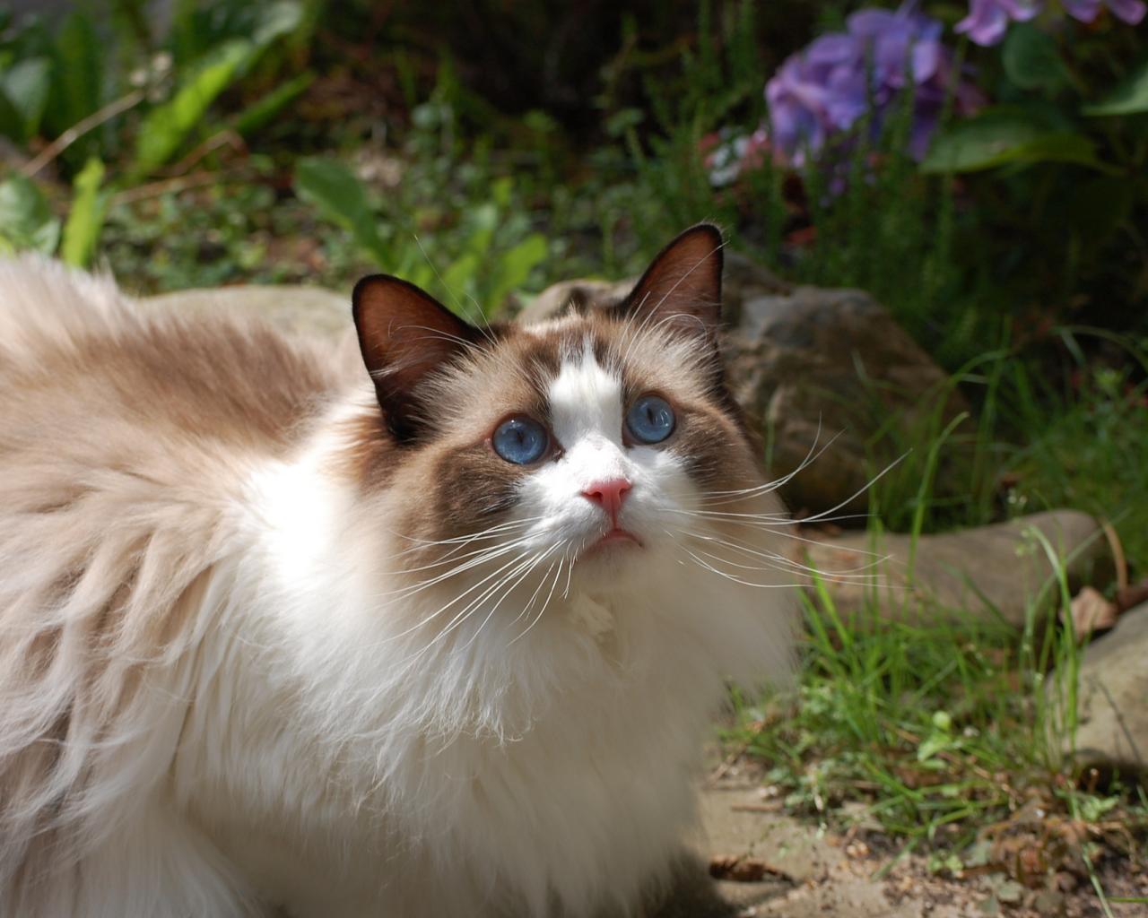 Обои Кошка рэгдолл на природе