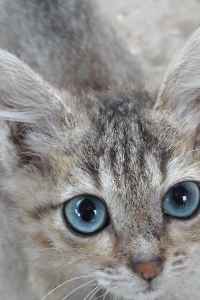 Обои Серый котенок охос азулес