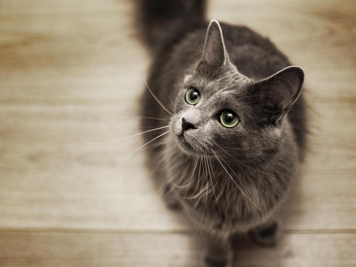 Обои Кот смотрит вверх