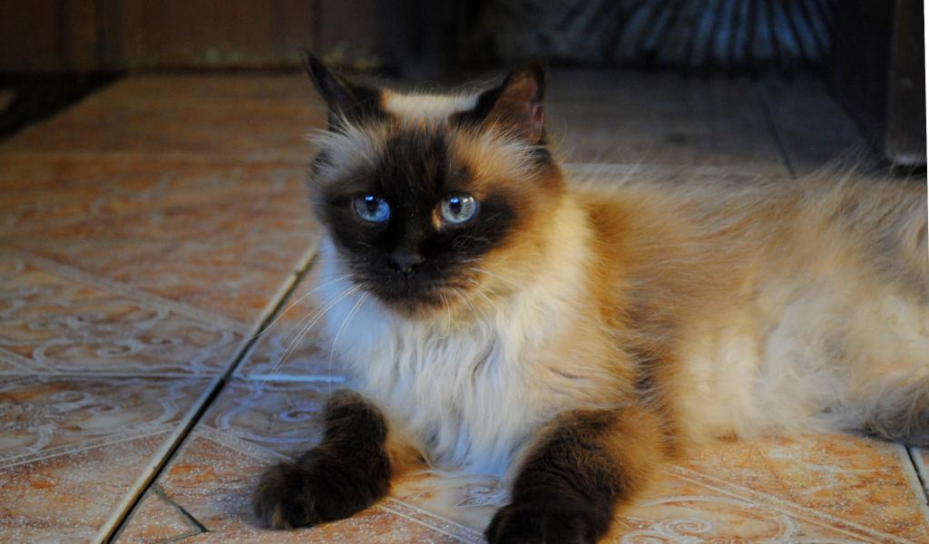 Обои Гималайская кошка лежит на полу