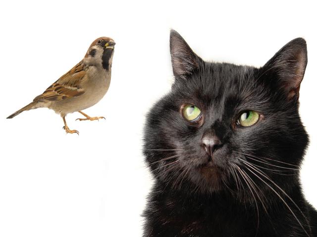 Обои Бомбейская кошка смотрит на птичку