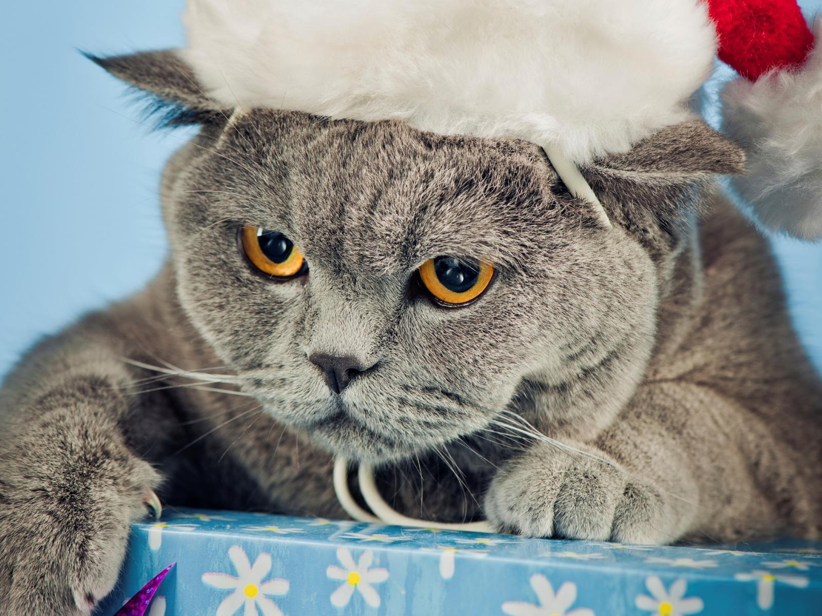 Обои Новогодняя британская короткошерстная кошка