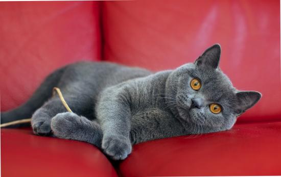 Обои Британская короткошерстная кошка на диване