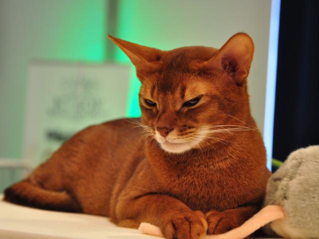 Обои Абиссинская кошка с игрушкой