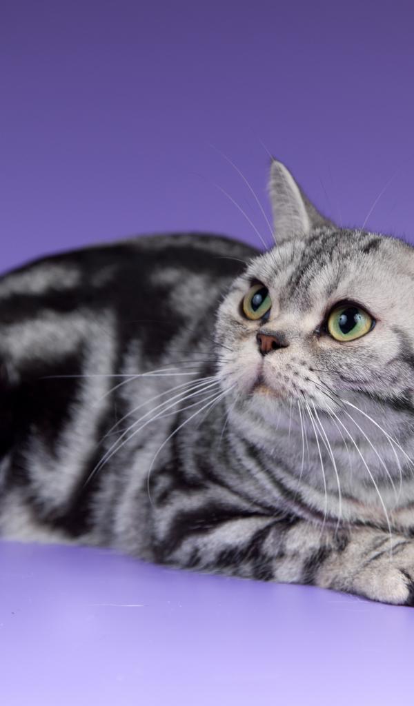 Обои Американская короткошерстная кошка смотрит вверх