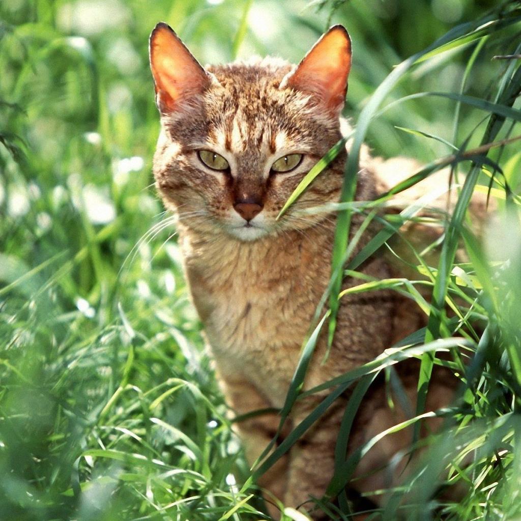 Обои Американская короткошерстная кошка в траве