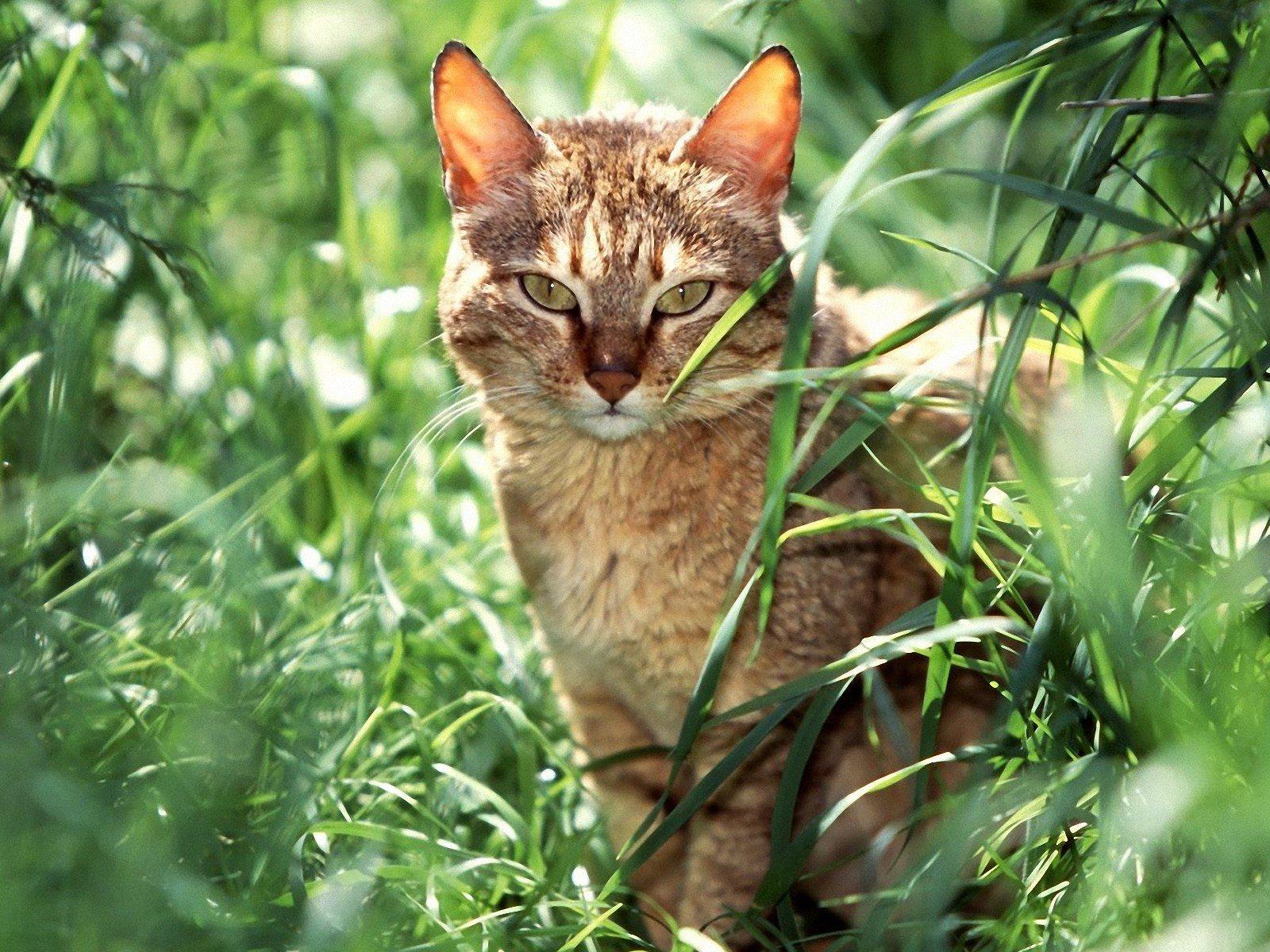 Обои Американская короткошерстная кошка в траве