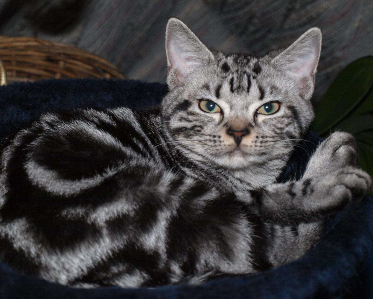 Обои Американская короткошерстная кошка в корзинке