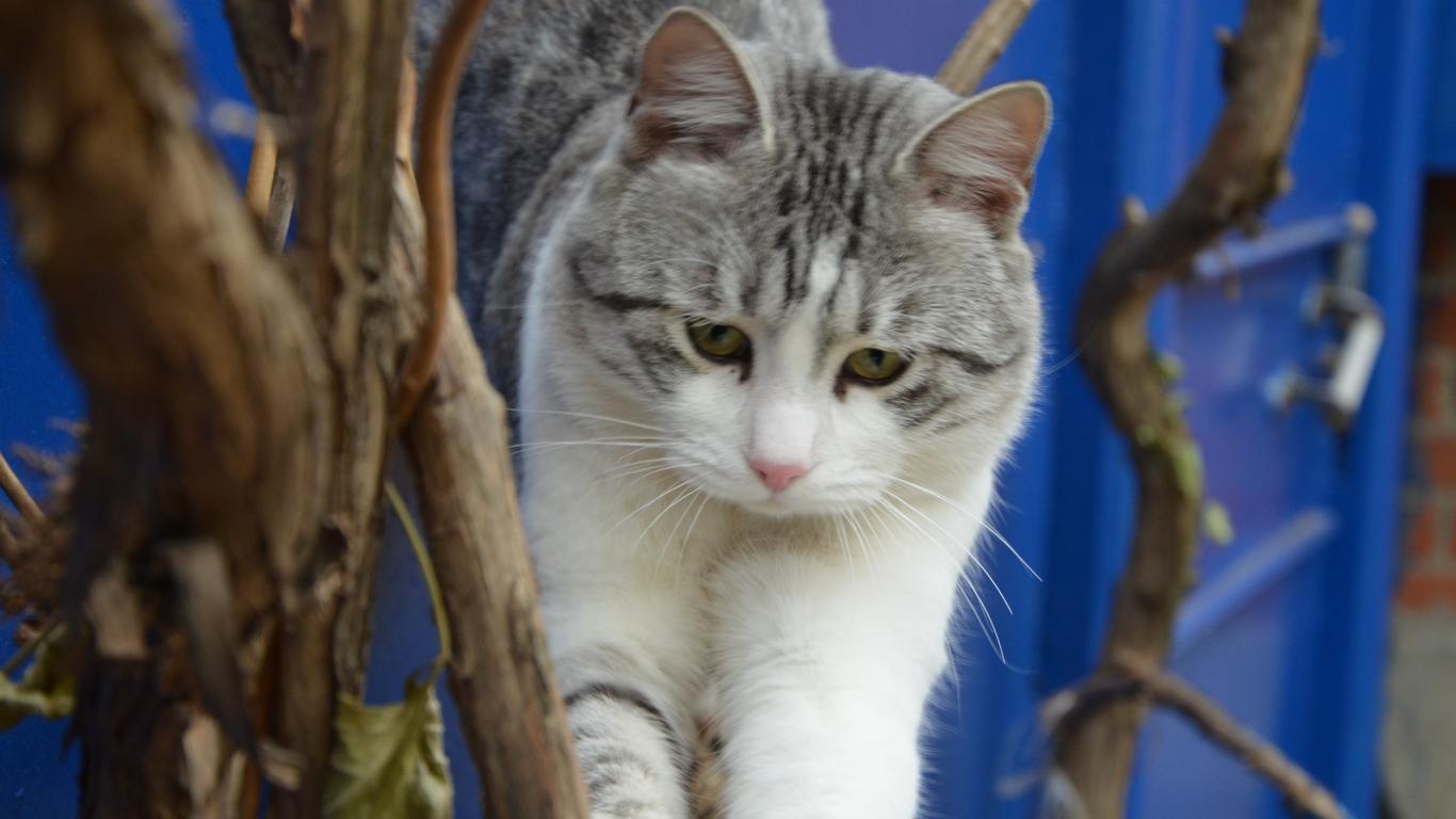 Обои Кот среди покрытых снегом веток