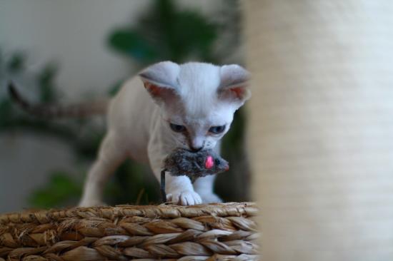 » Обои Котенок девон-рекс с игрушкой