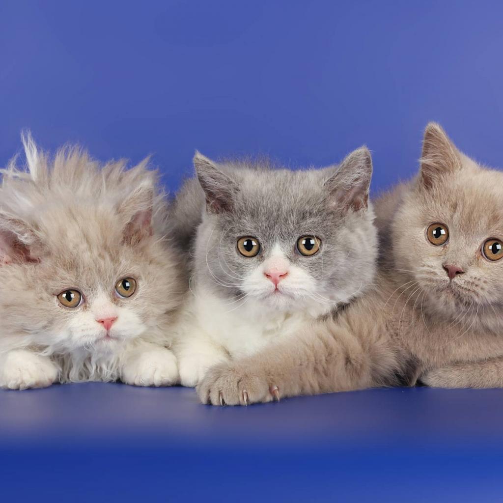 Обои Три котенка селкирк рекс