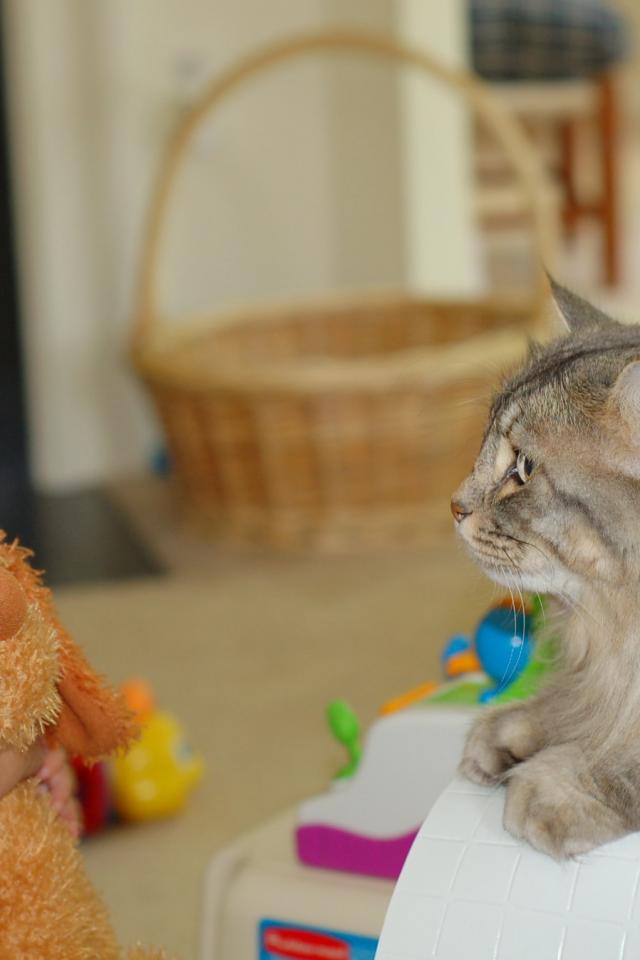 Обои Американский бобтейл и ребенок