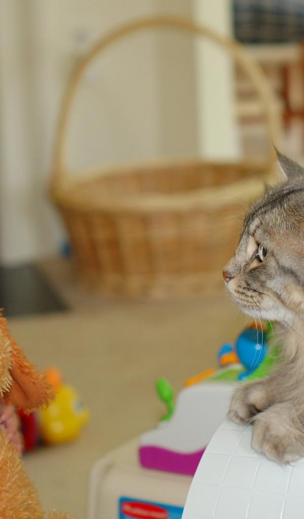 Обои Американский бобтейл и ребенок