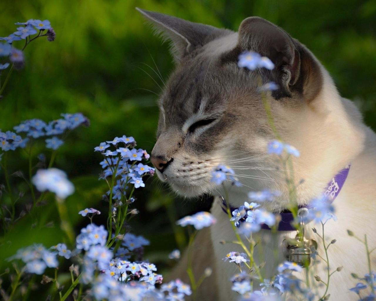 » Обои Тонкинская кошка в цветах