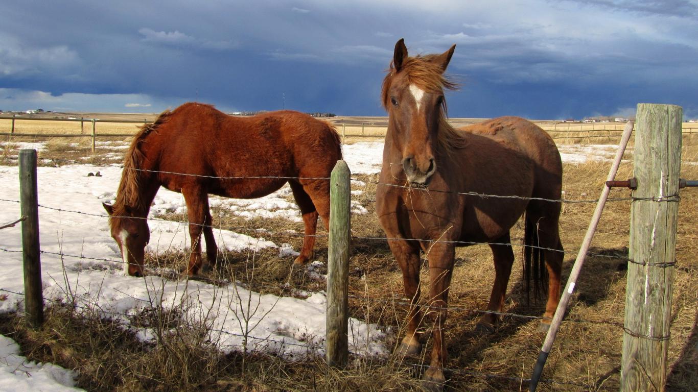 Обои Лошади на весеннем пастбище