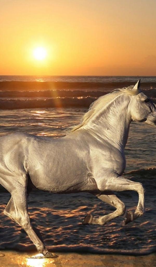 Обои Белая лошадь на пляже