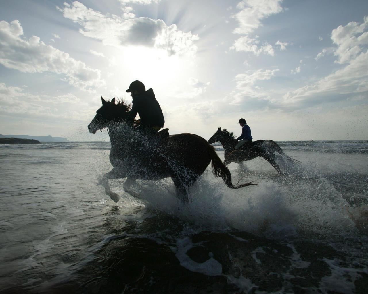 Обои Лошади в воде