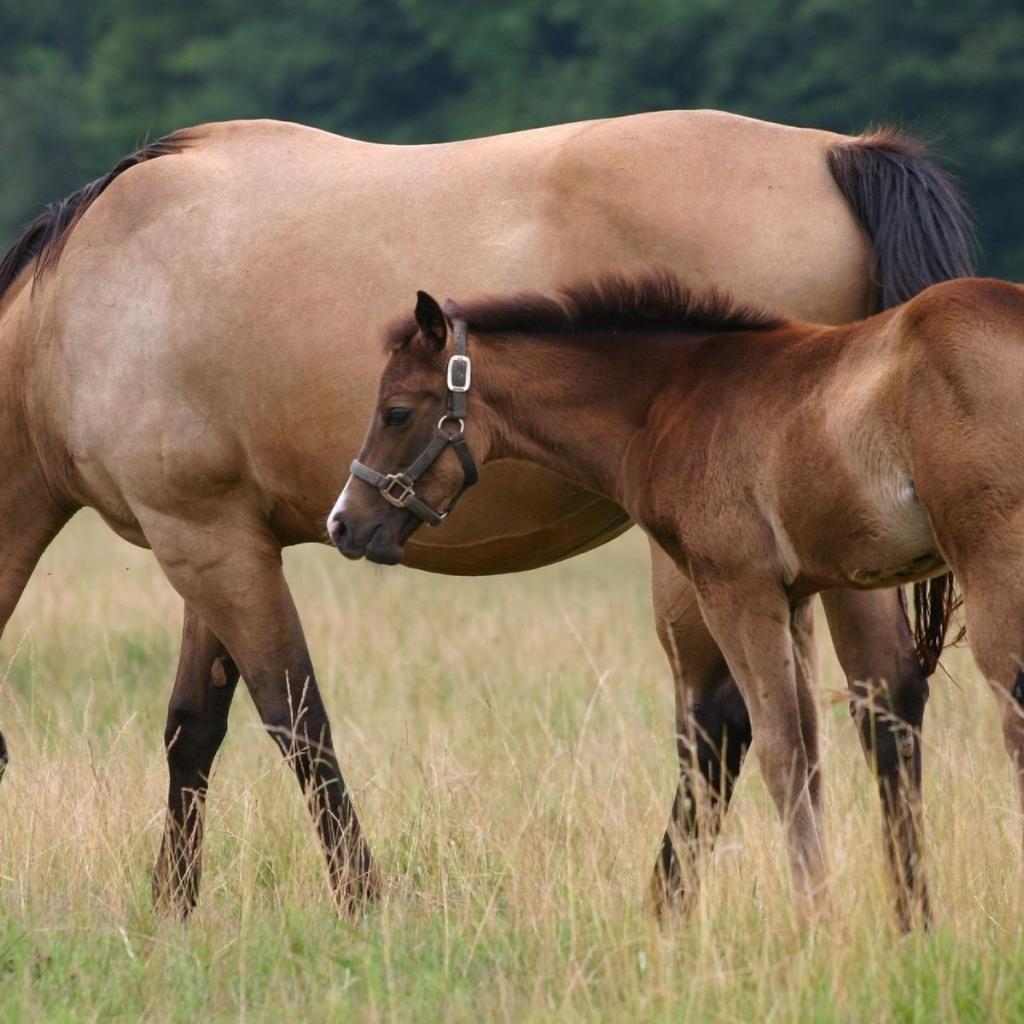 Обои Лошадь и жеребенок на пастбище