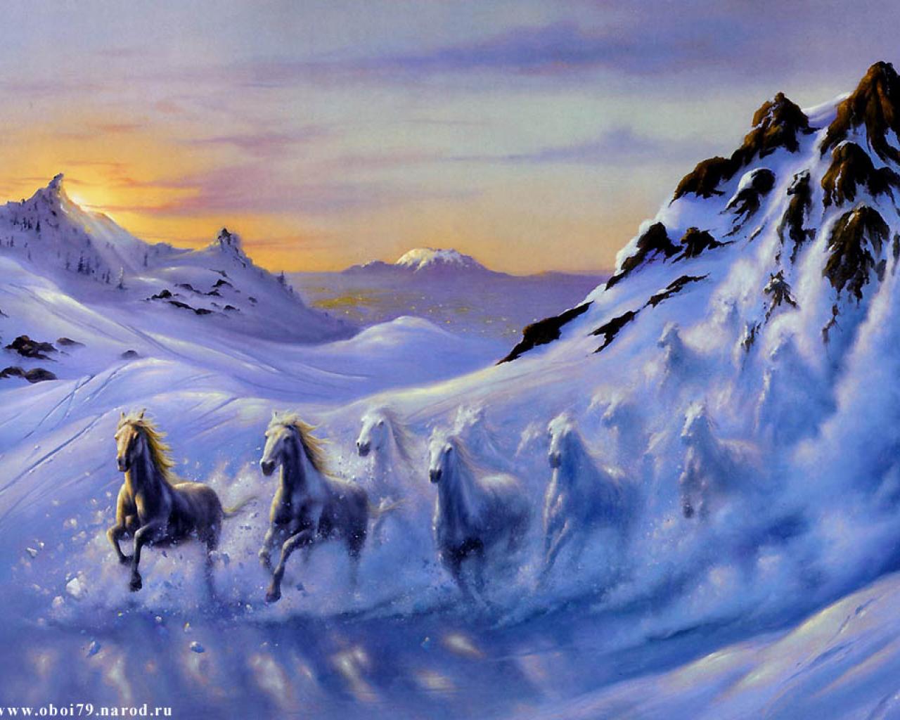 Обои Лошади зимой