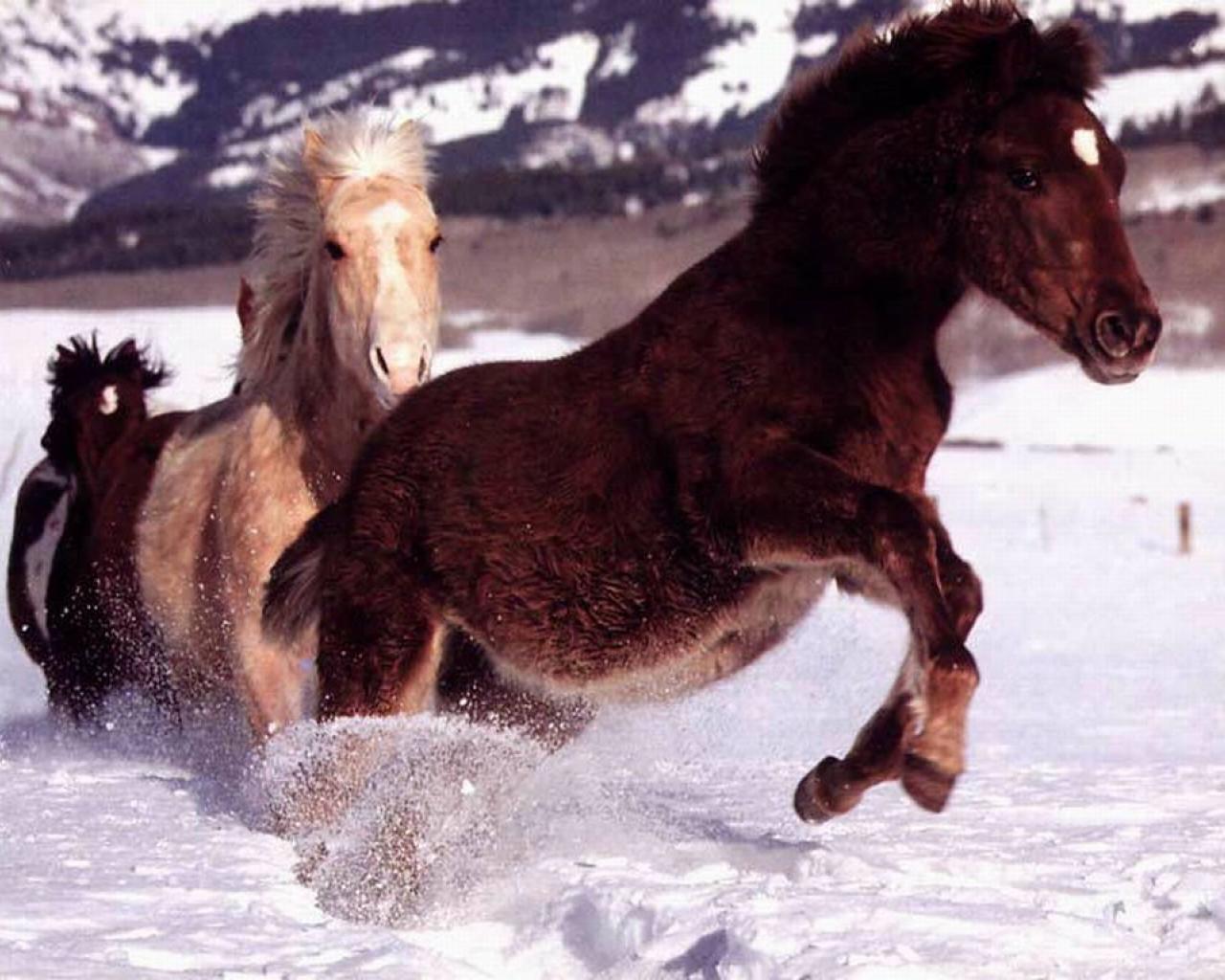 » Обои Лошади бегущие по снегу