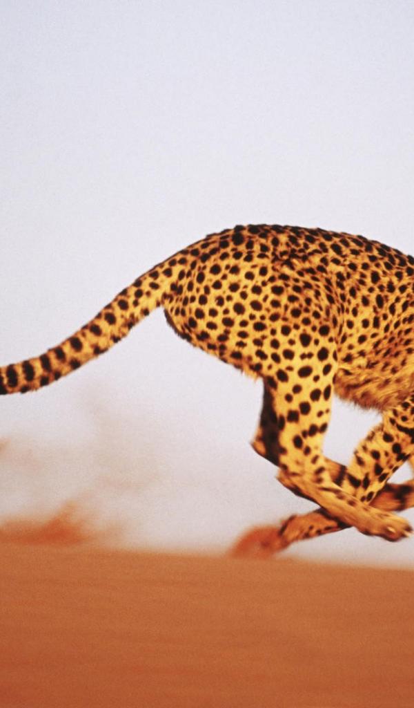 Обои Леопард бежит по песку