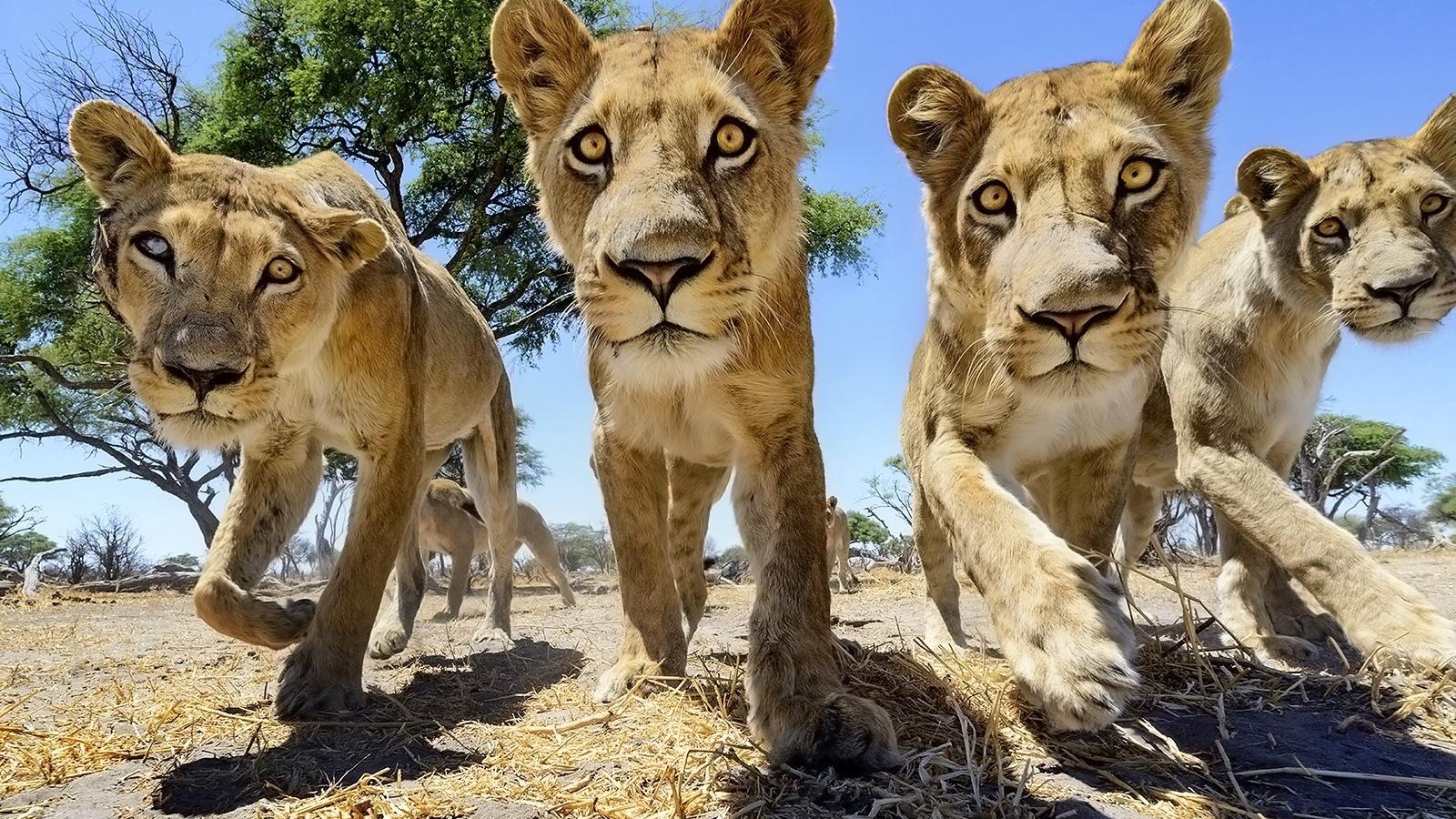 Обои Четыре молодых льва в Африке
