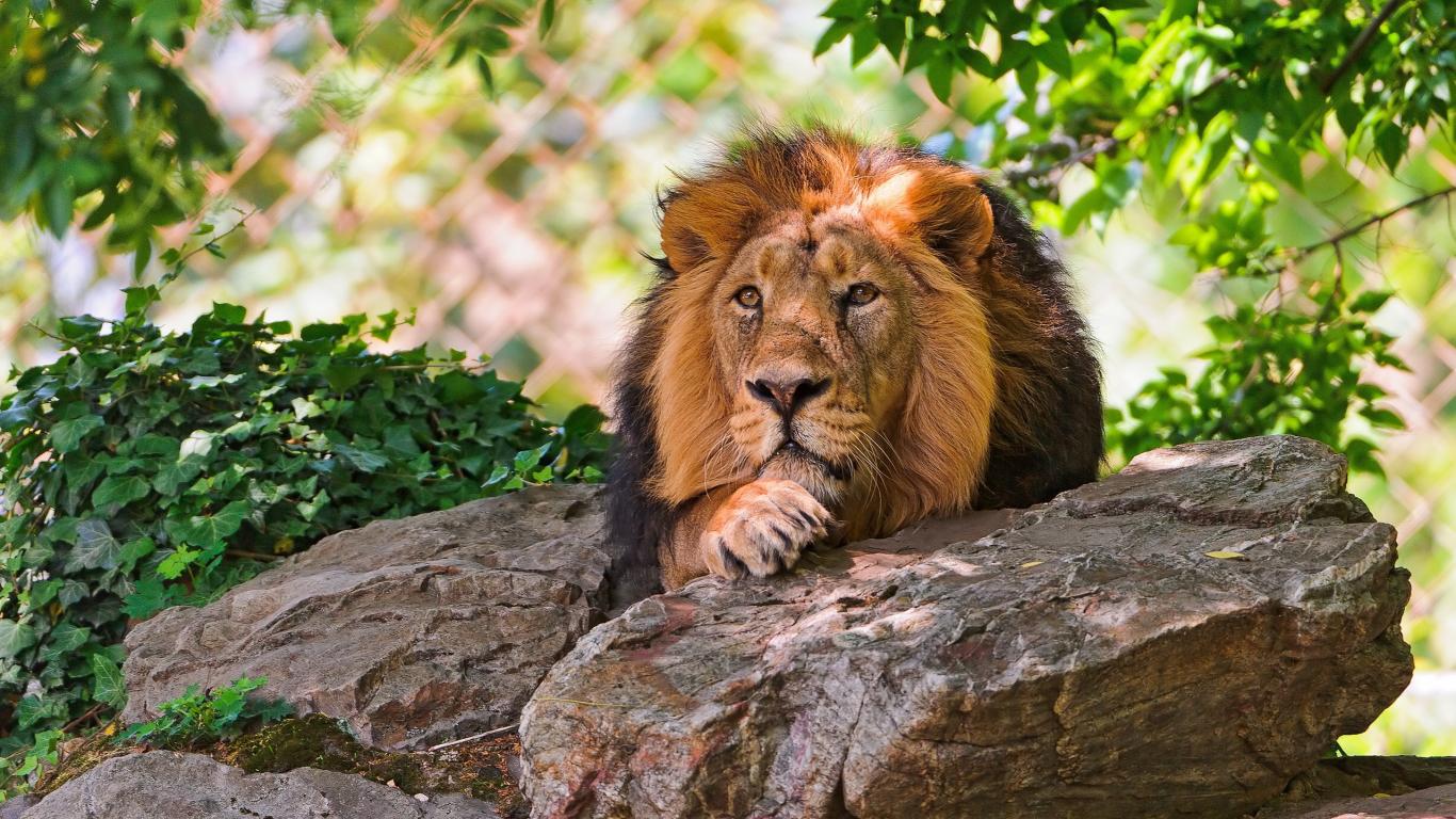 Обои Лев лежит на валуне