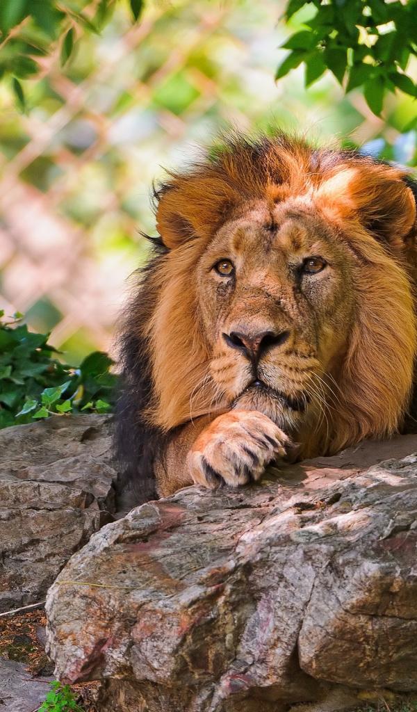 Обои Лев лежит на валуне