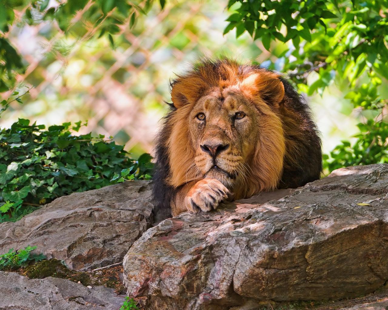 Обои Лев лежит на валуне