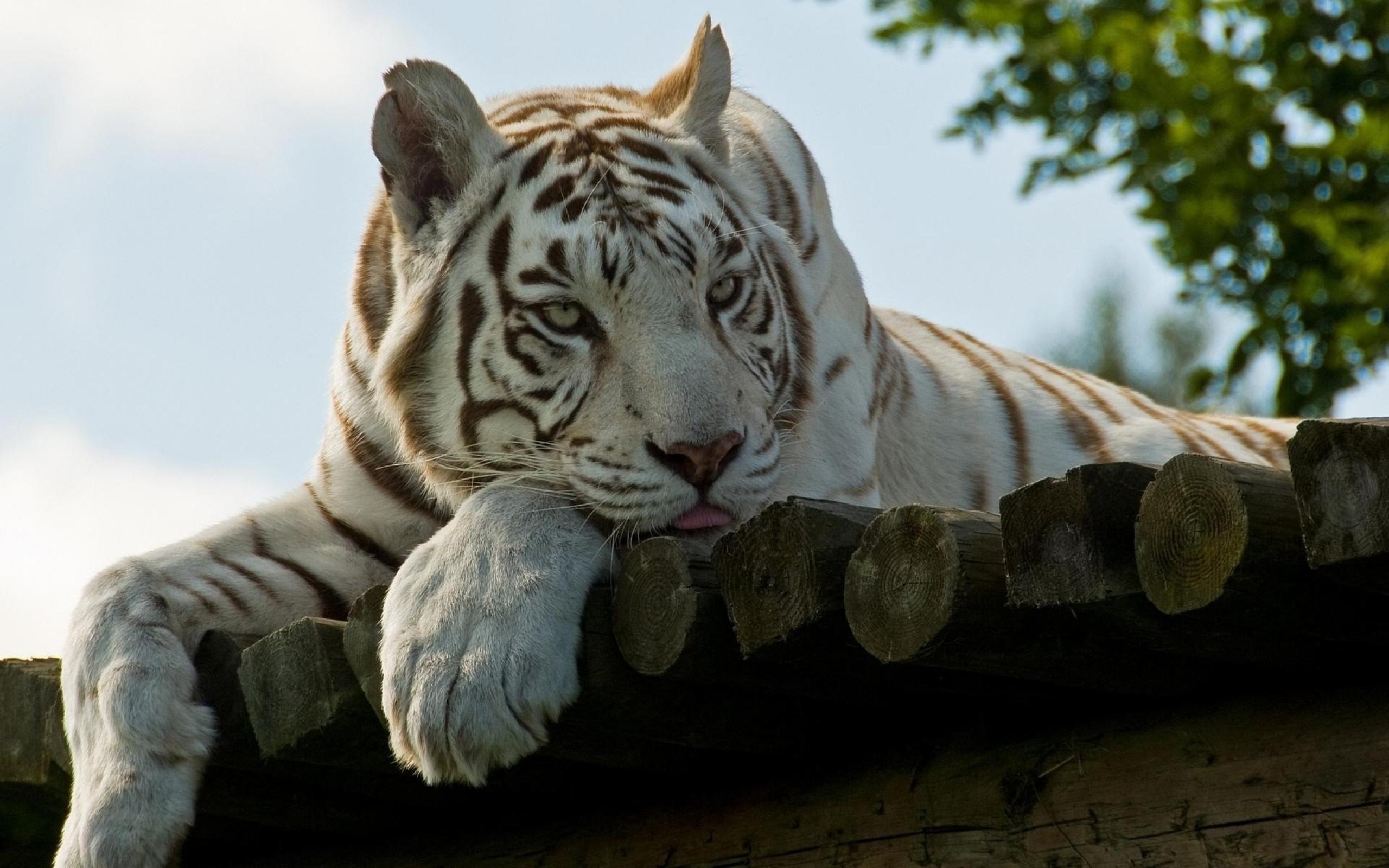 Обои Грустный белый тигр